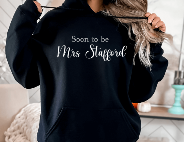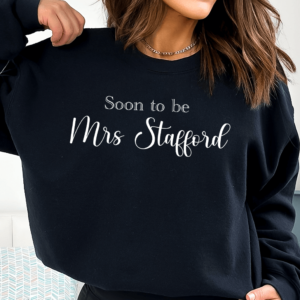Printed Soon to be Mrs with a surname of your choice. Simply drop a message with the surname to have it printed.