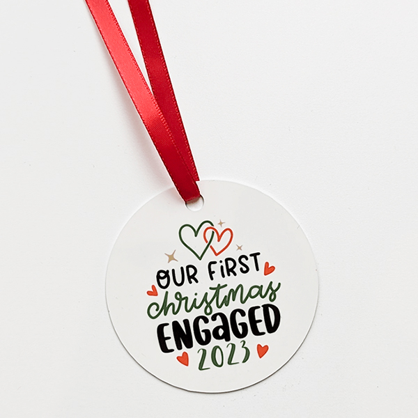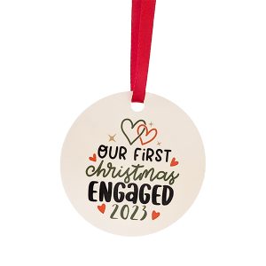Celebrate your first Christmas engaged with an ornament you can keep as a keepsake as well. Ornament printed with ‘Our First Christmas Engaged 2023’