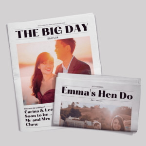 All of our newspapers are bespoke and we work with you to create the perfect newspaper. Simply purchase how many you want and the a designer will be in contact with you.